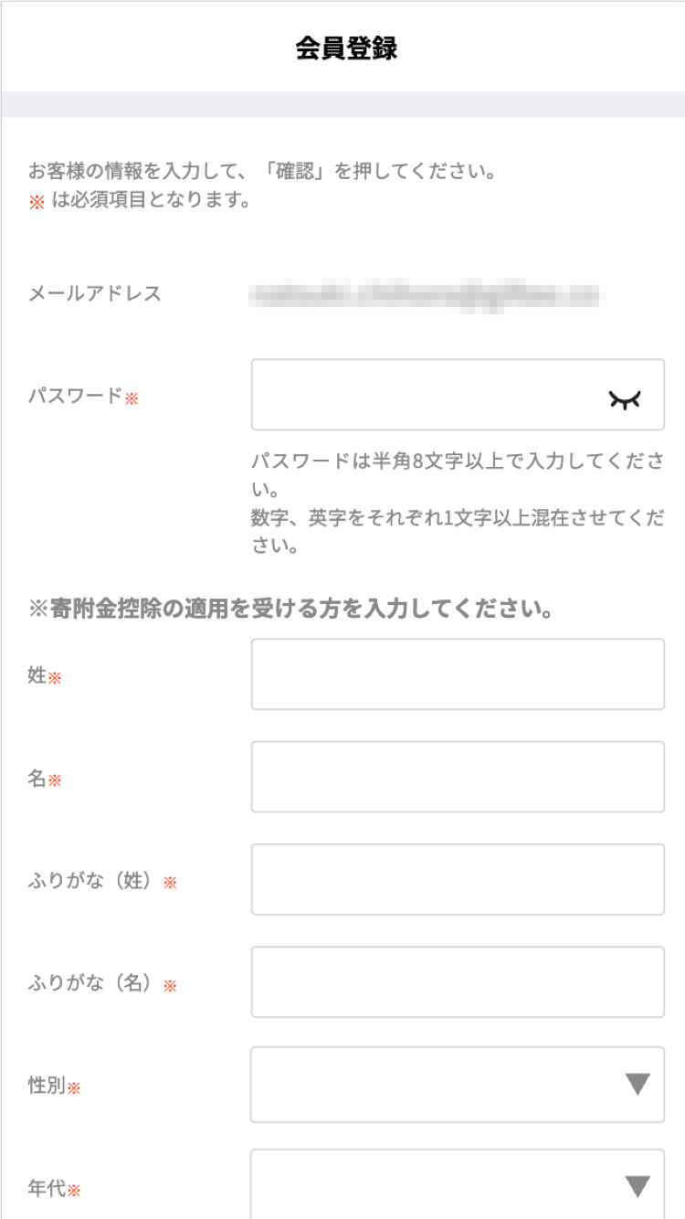 「新規登録」をタップし、会員登録画面でメールアドレスを入力します。